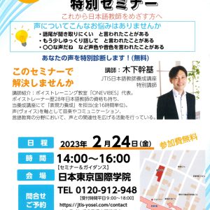 前回の記事では、「惹きつける授業!声のチカラ」というタイトルで日本語学校JTIS(日本東京国際学院)が行っている日本語教師420時間総合コースのご紹介をいたしました。JTISの420時間総合コースは、今期で11期目になります。その中で表現力養成というオリジナル講座を担当させていただいています。今期も...